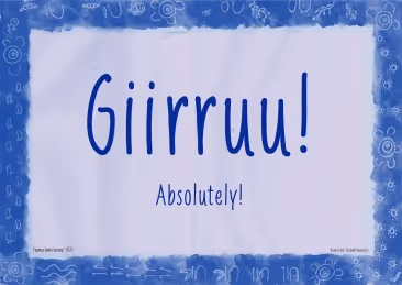 Traditionally it seems there was no equivalent of "Thank you" in Aboriginal languages or many other languages in the region, and it is used a lot more frequently in English than in many other languages around the world. The first phrase used in Gamilaraay was Gaba nginda which means "You are good". But this is also used as a question Gaba nginda? meaning "Are you good?" So in order to avoid confusion we can use another phrase, recorded by the missionary William Ridley in about 1855 who reported on his meeting with a blind Gamilaraay man. After Ridley helped him the man said Maarubaa nginda to express his thanks.