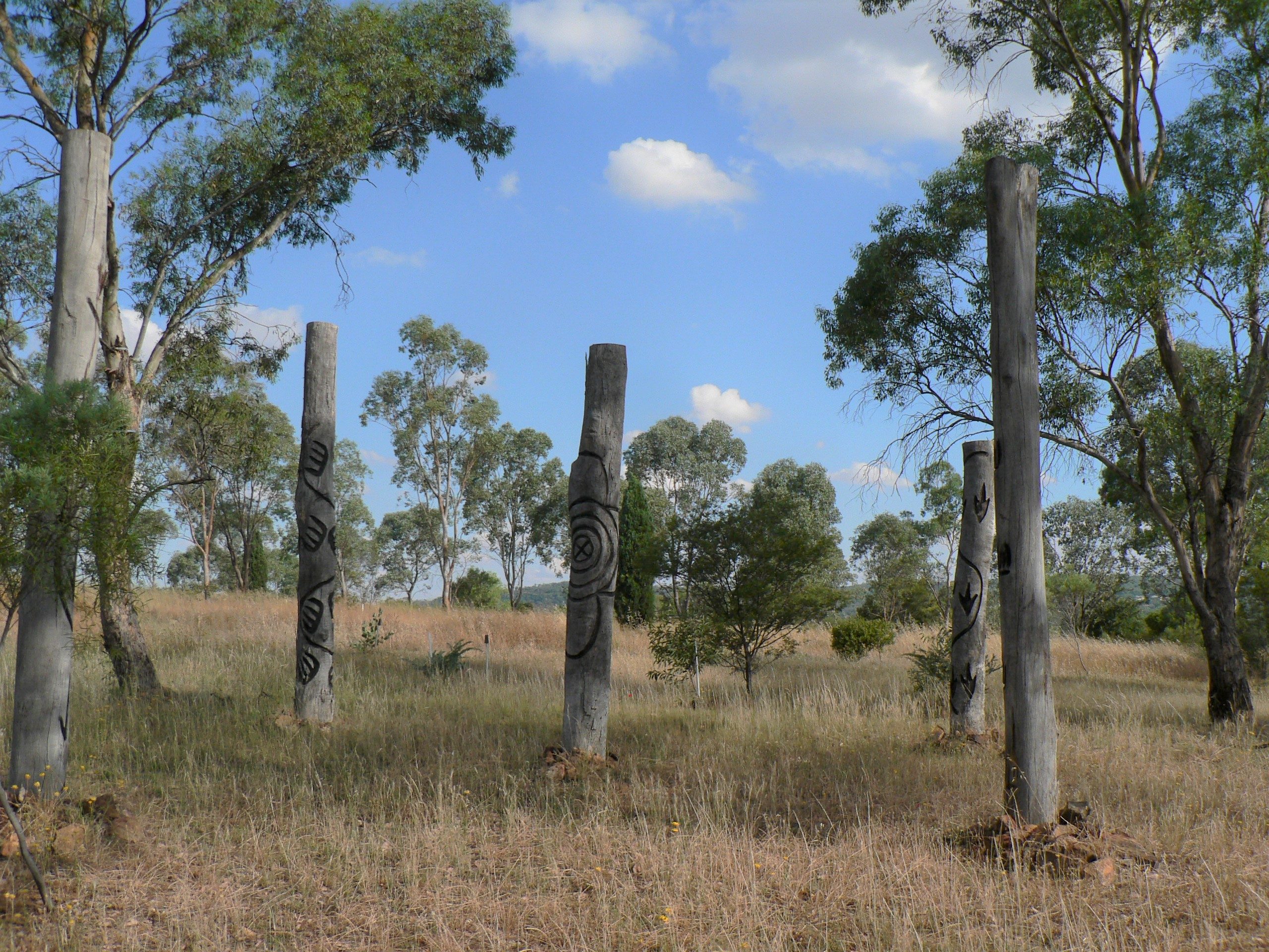 The stamps feature designs from totem poles which were handcrafted by local Gamilaraay artists in 2012 to stand on Pensioners Hill in