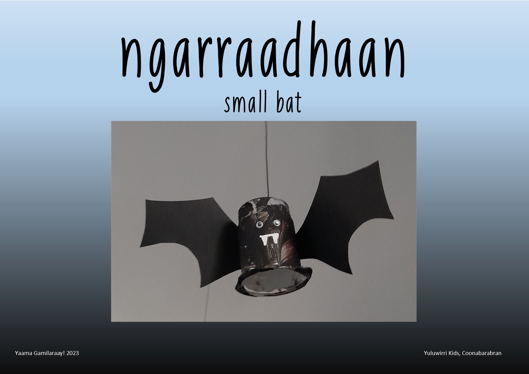 This is the name for any small bat. Known as ‘man’s friend’. Possibly from ngarra-li ('see' in YR) and the suffix -Dhaan